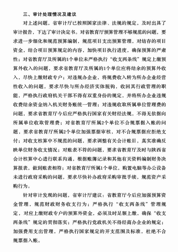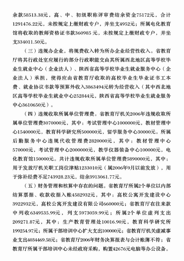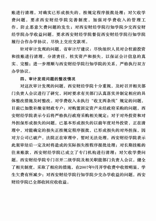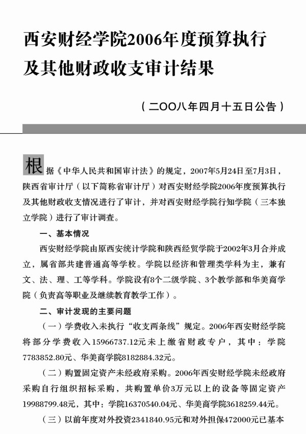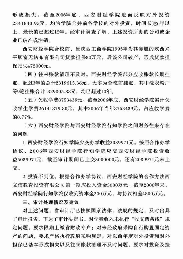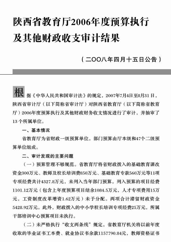 2008年第3号:陕西省教育厅、西安财经学院2006年度预算执行及其他财政收支审计结果