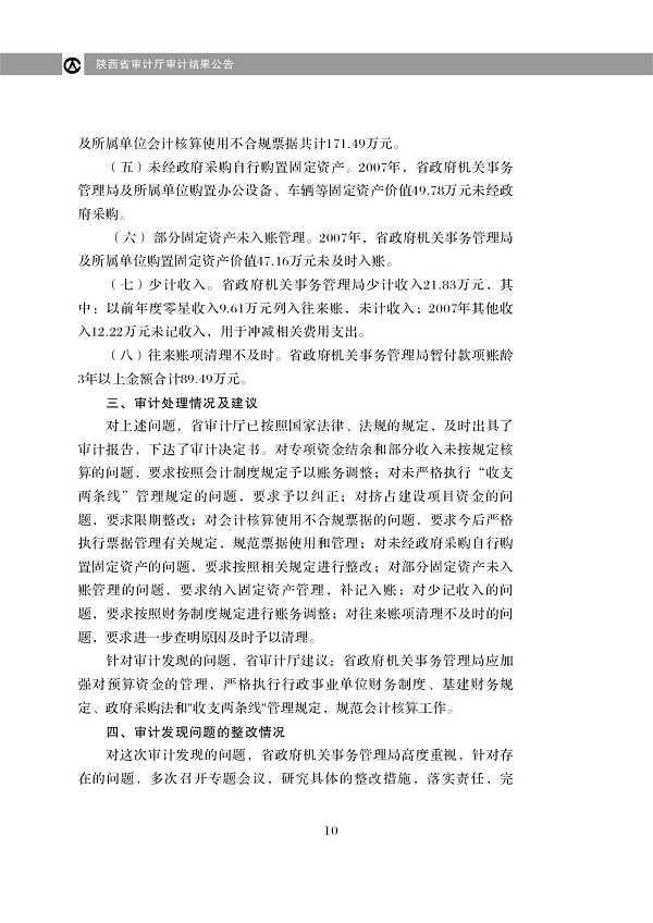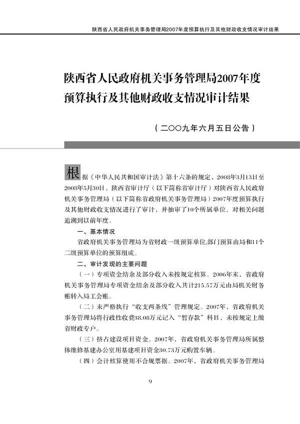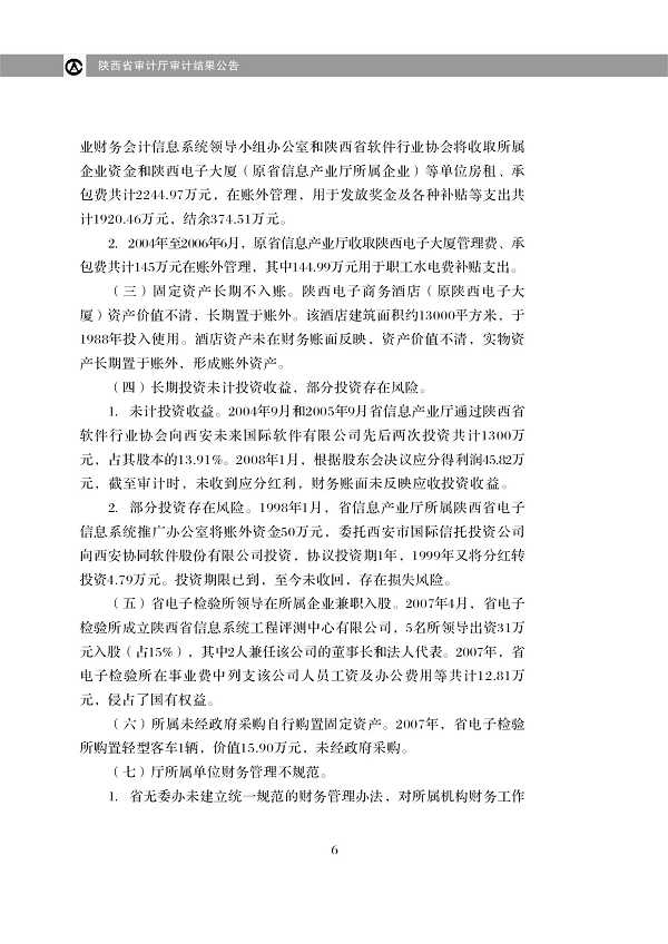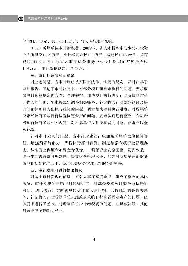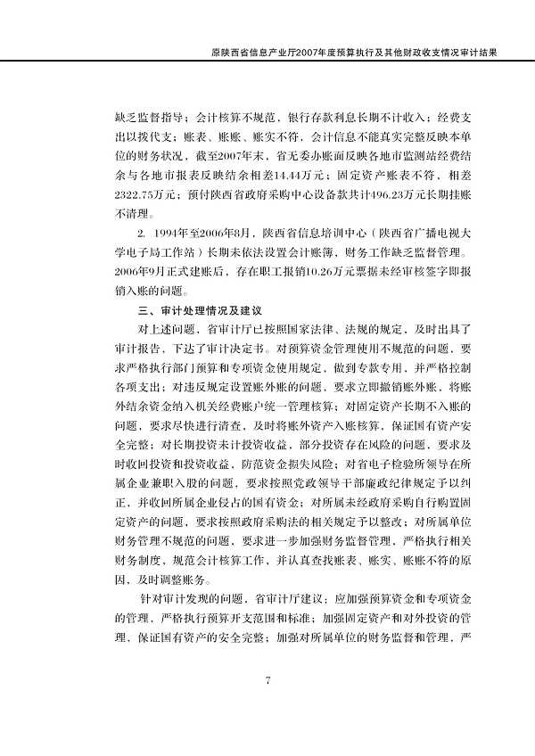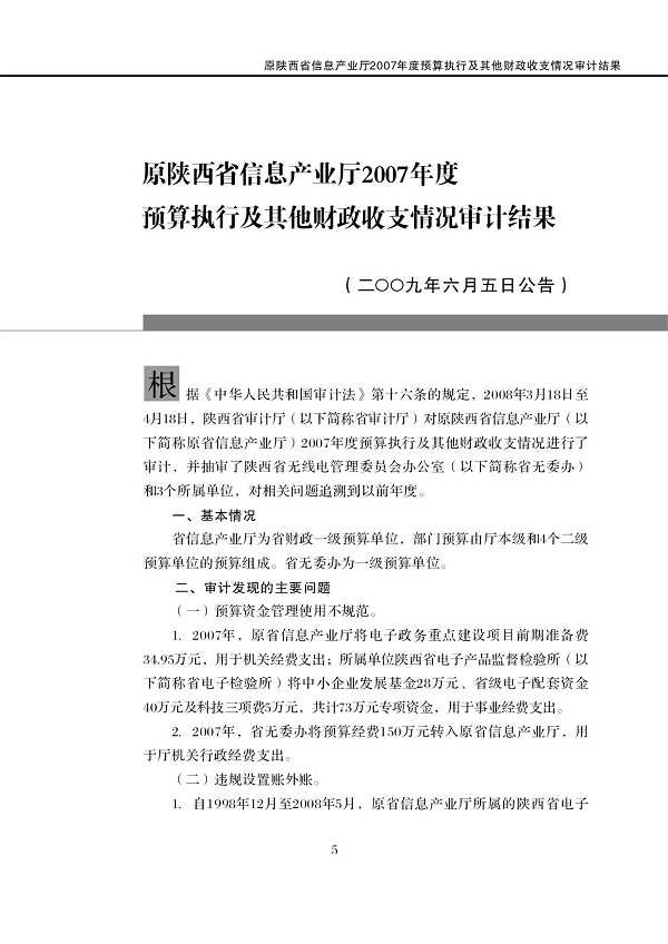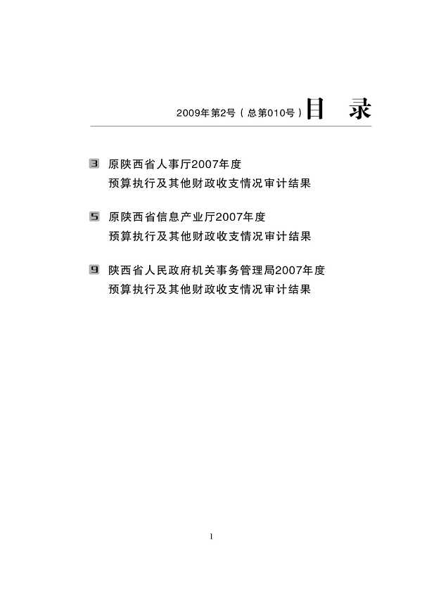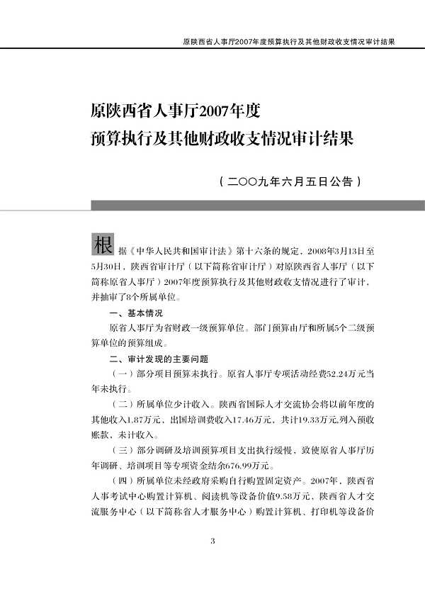 2009年第2号:原陕西省人事厅、原省信息产业厅、省人民政府机关事务管理局2007年度预算执行及其他财政收支情况审计结果
