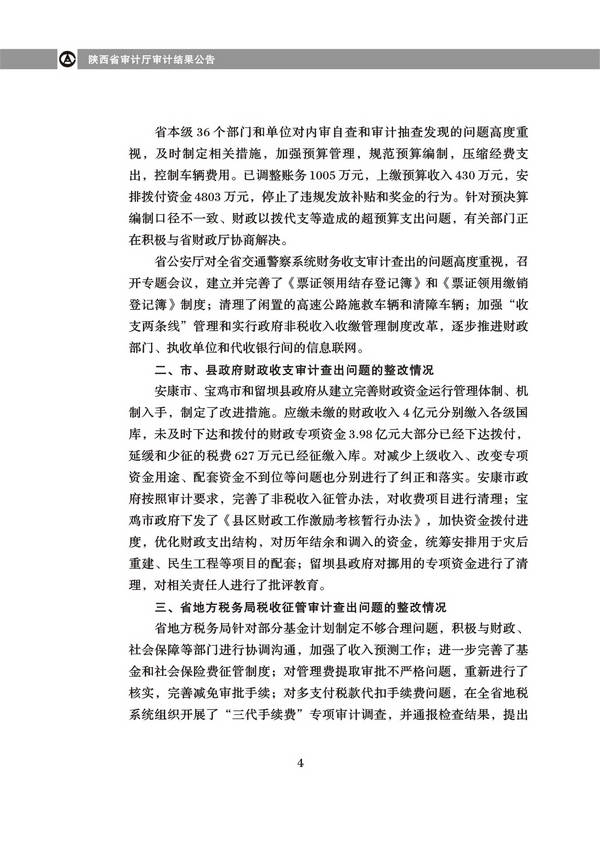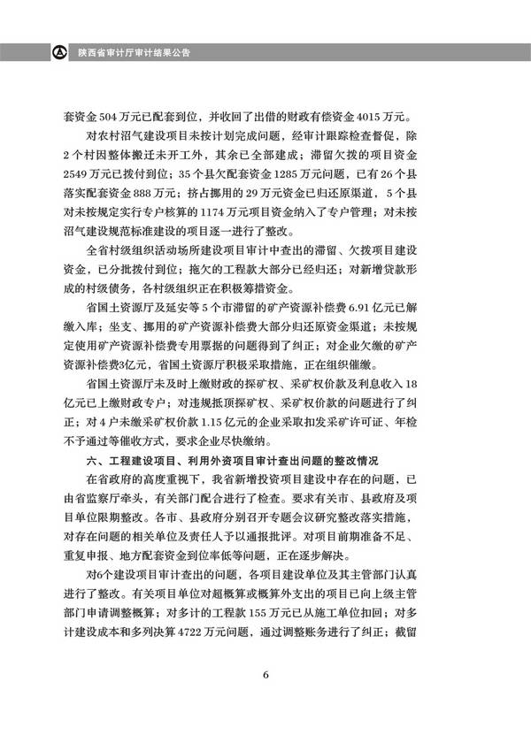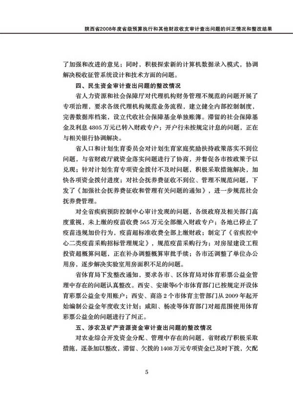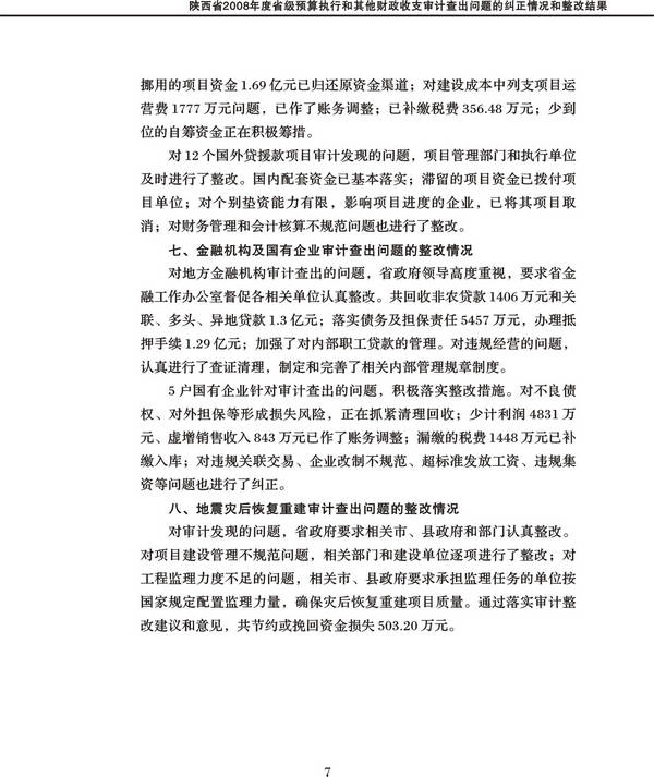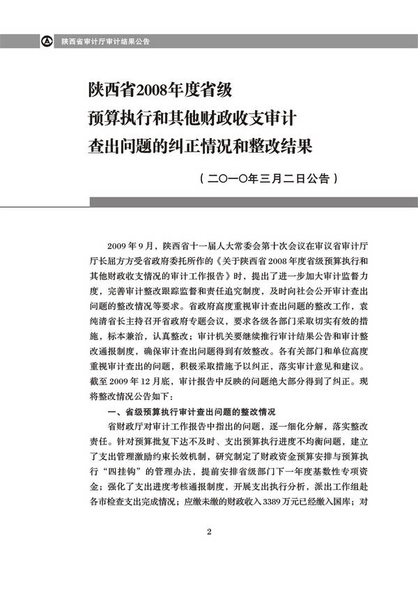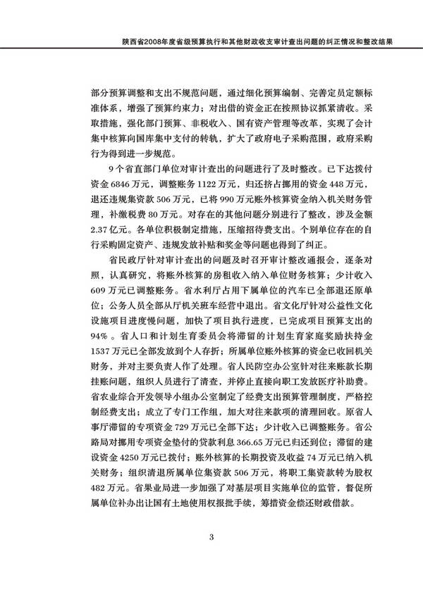 陕西省2008年度省级预算执行和其他财政收支审计查出问题的纠正情况和整改结果