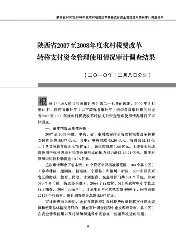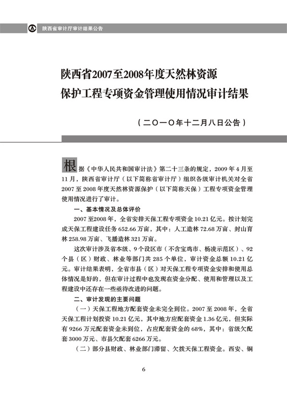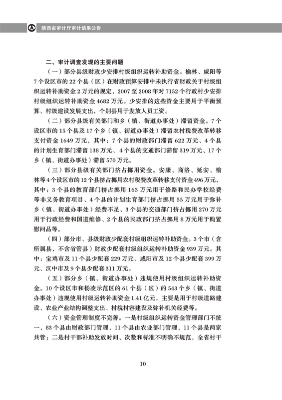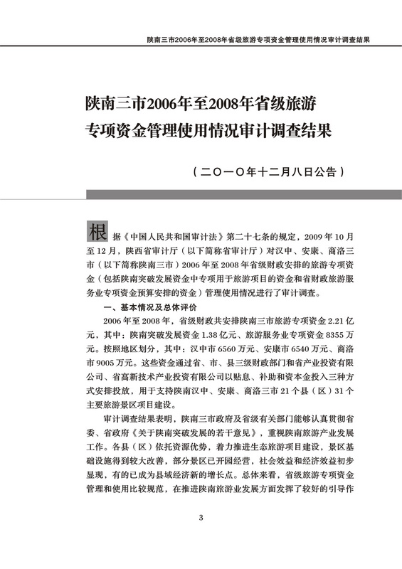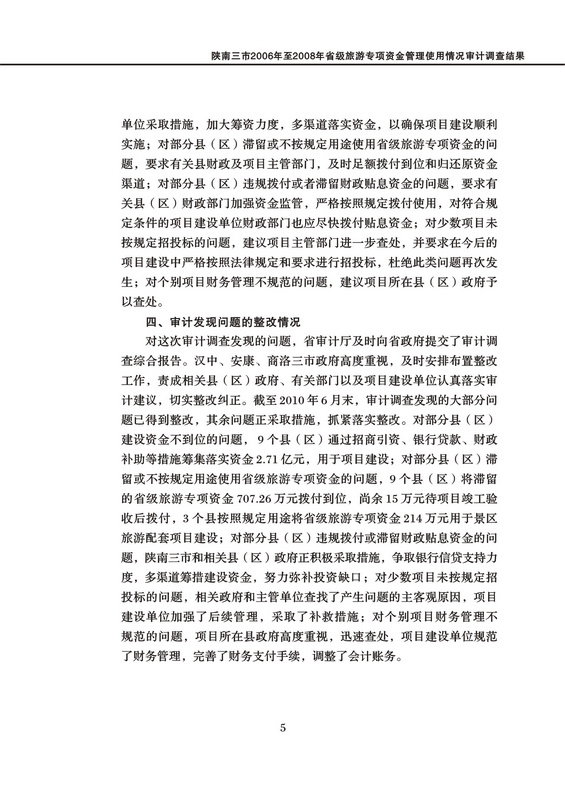 2010年第5号:陕南三市2006至2008年度省级旅游专项资金管理使用情况审计结果等