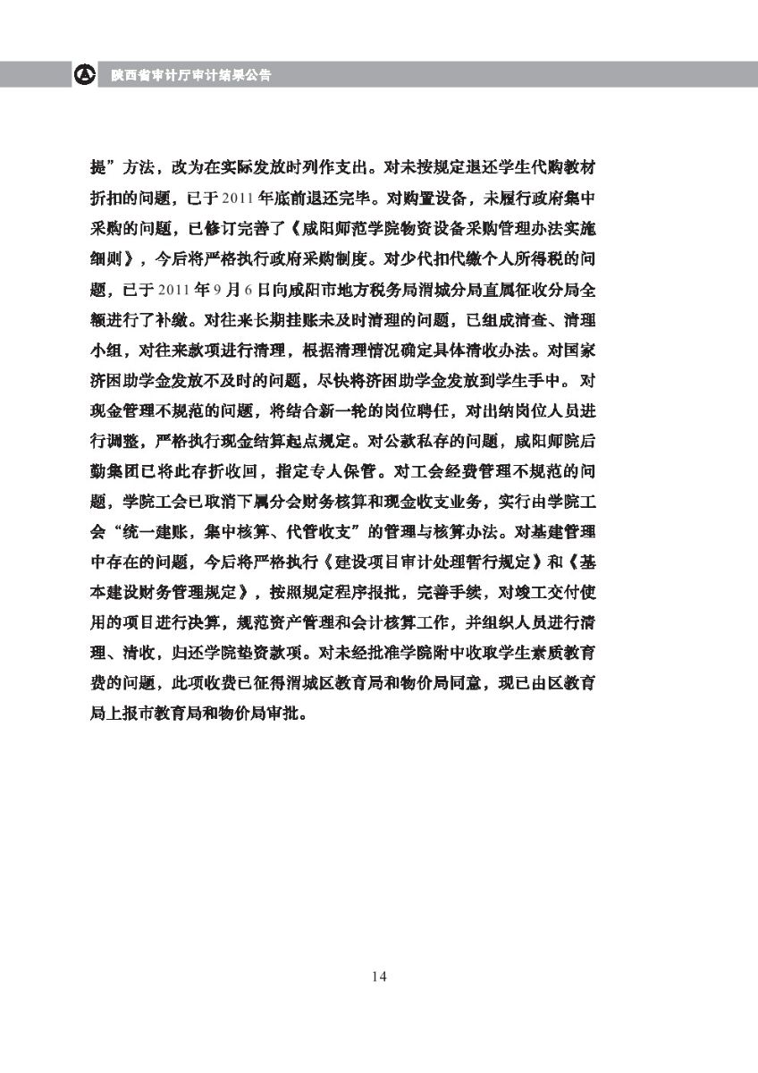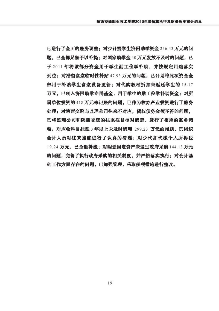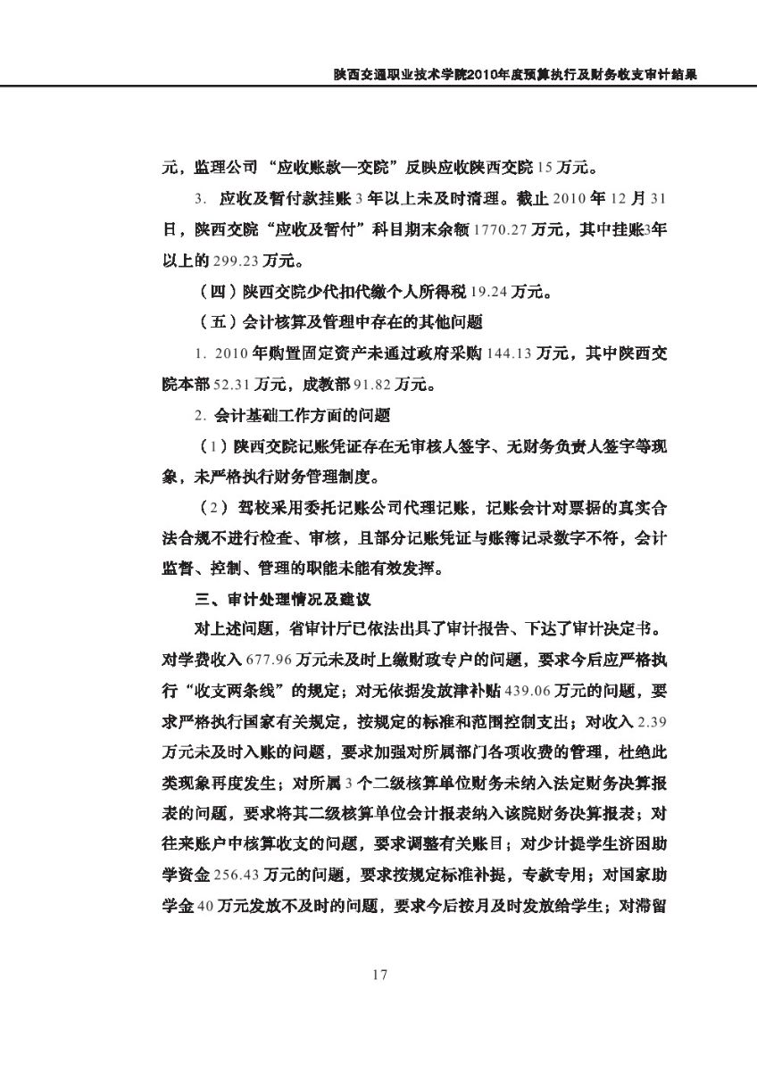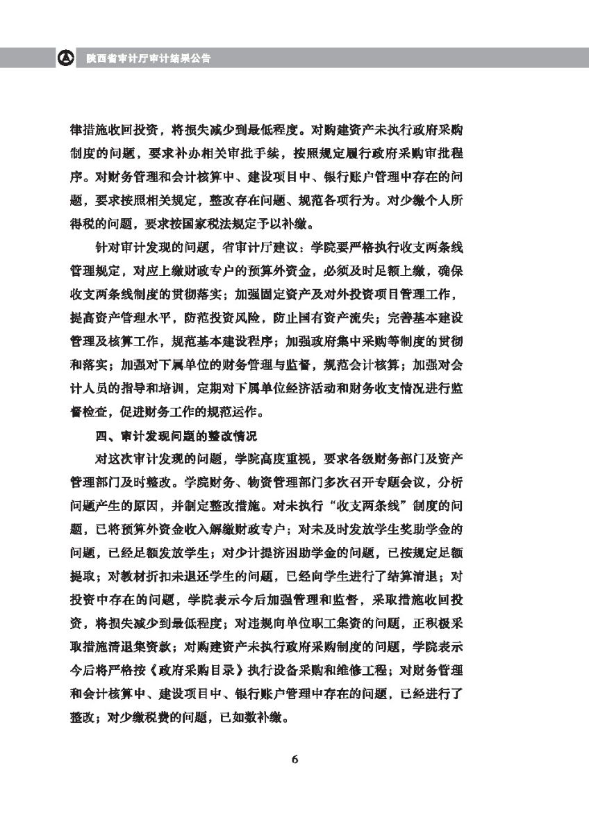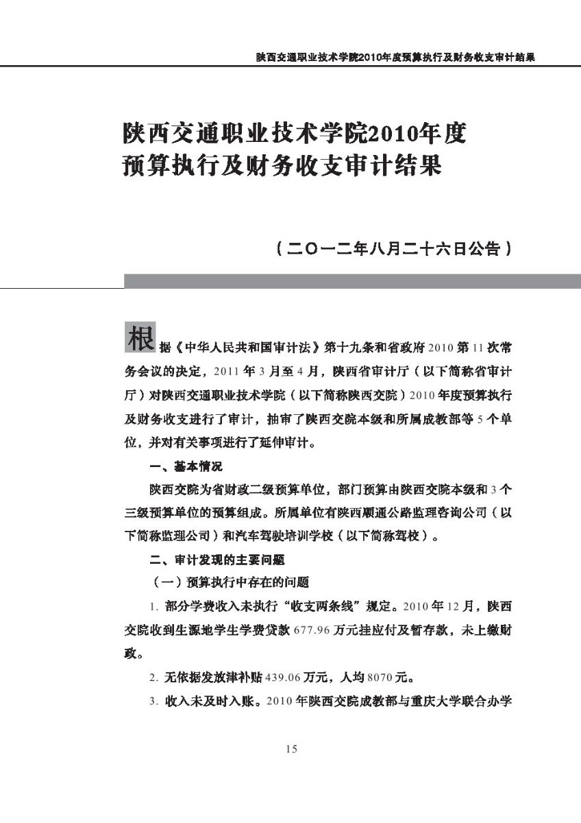 西安体育学院2010年度预算执行及其他财务收支审计结果等